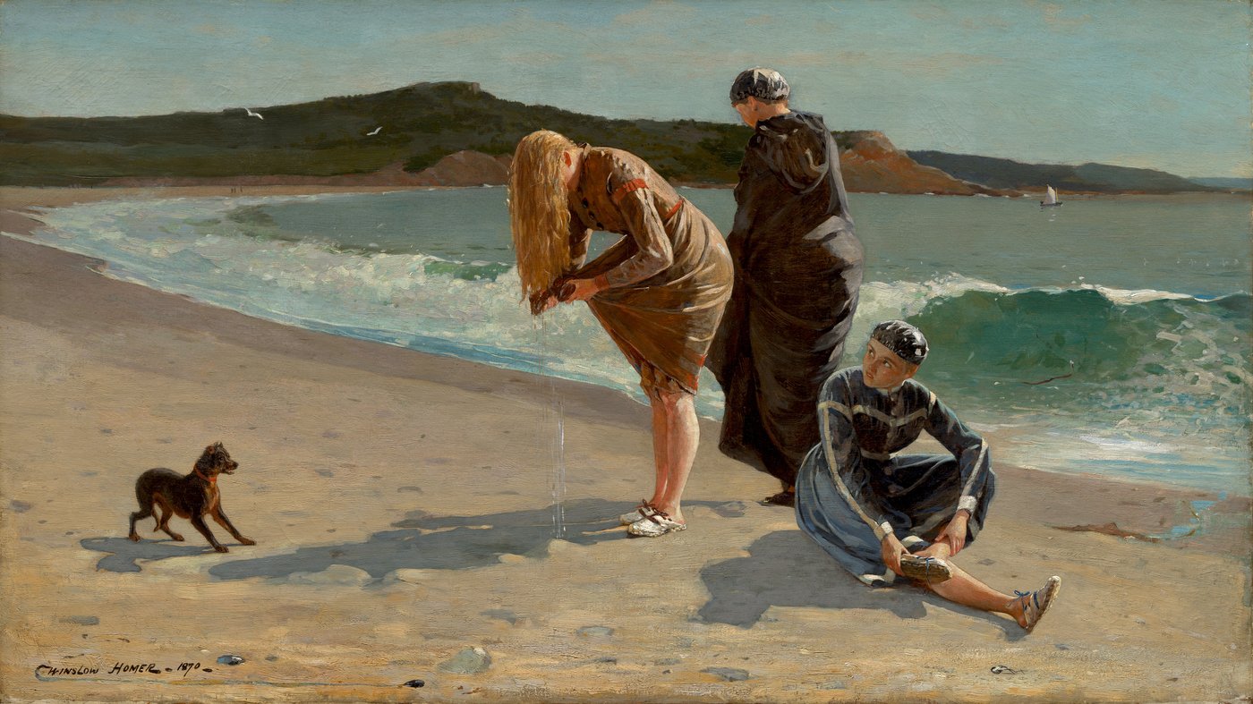 Winslow Homer’s "Low Tide" (1870) captures a moment of leisure and exploration on the New England shore, reflecting the growing appreciation for beach life in the Victorian era.